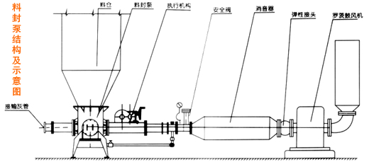 料封泵一般安裝在料倉庫底比較合適,要固定牢靠,并對進出風(fēng)管給以固定。同時保證風(fēng)管在水平線上,各連接處要加以密封處理,保證不漏氣。